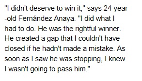 I think Fernandez Anaya did the right thing and showed us that even at higher levels of competition winning isn’t everything. Sometimes it’s more important to be a good human being, even if your coach doesn’t approve.