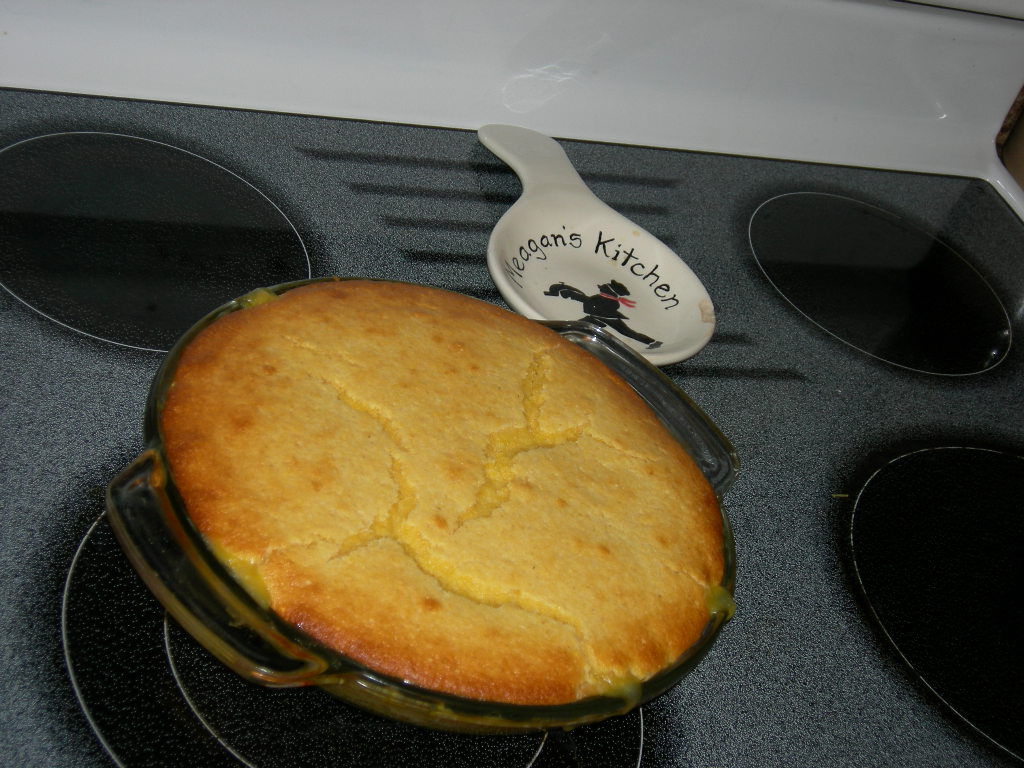 Dinner tonight was cornbread chicken pot pie. Basically it’s chicken, cream of chicken soup, and corn mixed together and then topped with cornbread. It’s a recipe out of my Campbell’s casserole recipe book that my grandparents gave me a few Christmases ago. Perfect dinner after a cold day. Want to know the secret to awesome cornbread? Jiffy.