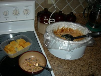 The Cream Cheese Chicken Chili turned out really good. Barry and I both enjoyed it, along with the leftover cornbread, which went perfect with the chili. It has just a little bit of a kick. Tonight’s dinner is leftover chili, woohoo!
