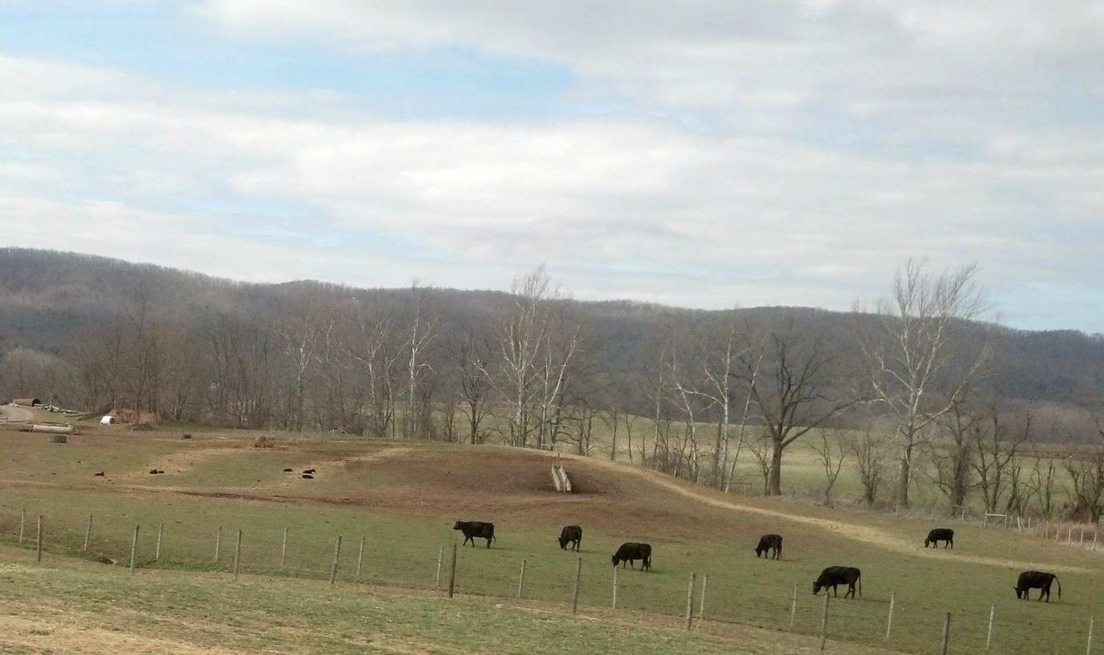 They also raise beef cattle. Do you see the new babies laying on the hill? They look like ants in this picture.