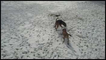 1. They spent hours making all of those paw prints! I kept trying to bring them back inside, but all they wanted to do was chase each other outside and wrestle in the snow.