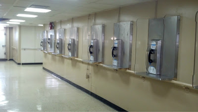 Other areas outside of the hospital portion look more like a typical ship. This wall of payphones is where members of the crew can call home.