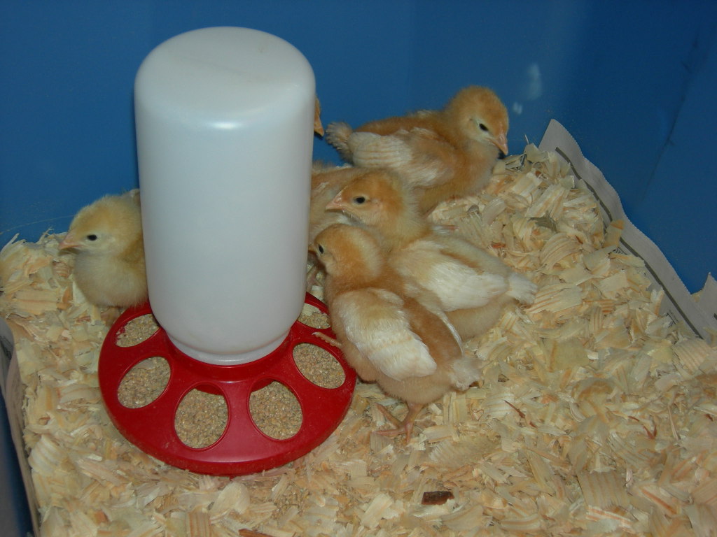 We have also raised the heat lamp a few inches, bringing the temperature down to 90 degrees or so. The chicks are starting to get their wing feathers and a few of them are also getting tail feathers! (That always makes me think of Nelly’s Shake Ya Tailfeather)