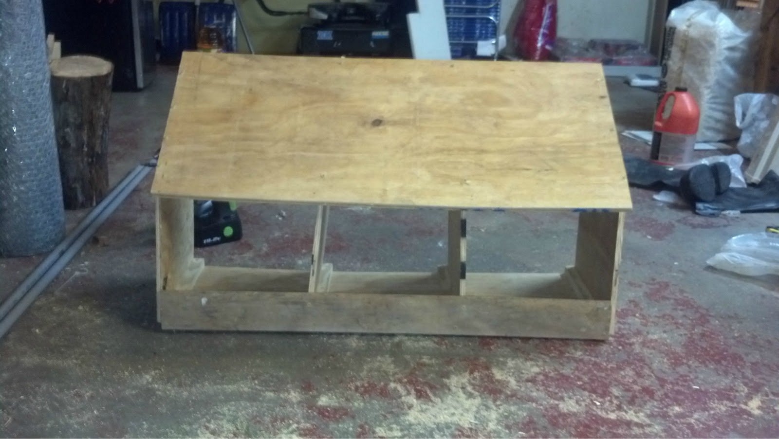 We got to work on building their nesting boxes, which is where they will lay eggs in the coop. This was our first construction project, and I think we did a pretty good job. I did the measuring and drew the lines, Barry cut out the pieces, and then we (mostly Barry) did the drilling and put the screws in. The one divider ended up a little crooked, but Barry was able to fix it. That may or may not have been the one I put the screws in for…