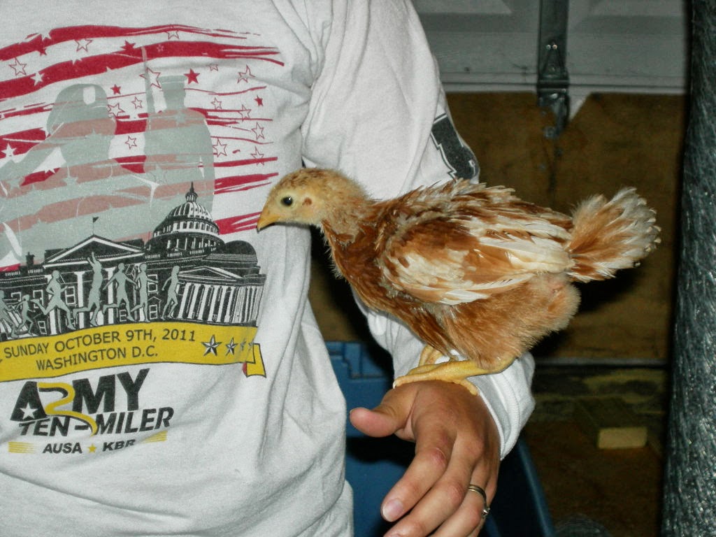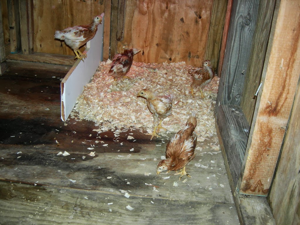 At five weeks old they had grown enough and had enough feathers to move outside to the chicken coop: