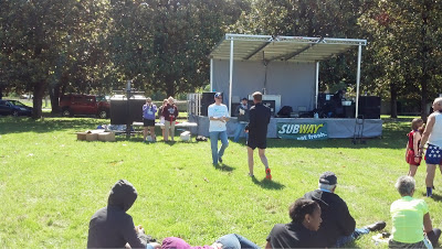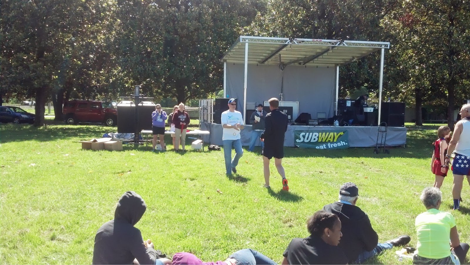 The race was part of a festival called the Appalachian Power Festival (duh) so there were a bunch of craft and food vendors. We walked around after the awards ceremony and looked at each of the booths, but didn’t buy anything. That’s really saying something especially since there was a fruit smoothie vendor and a craft vendor selling homemade Hokie stuff. Call it self control or call it only having $5 on me… which was not enough to purchase any of the above mentioned items.