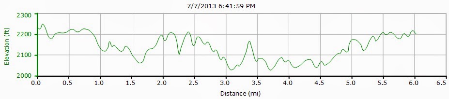I waited all the way until Sunday evening to do my long run. Barry joined me for 6 miles on the roads around our house. That means automatic hill training.