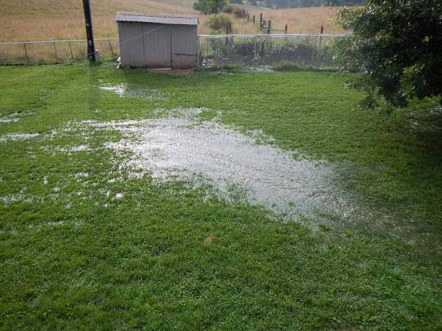 When I got home from work today a big thunderstorm rolled in and it absolutely poured the rain. Once again we have a river running through our side yard and into our backyard. Happy joy. Every time it rains like this I call it duck weather.
