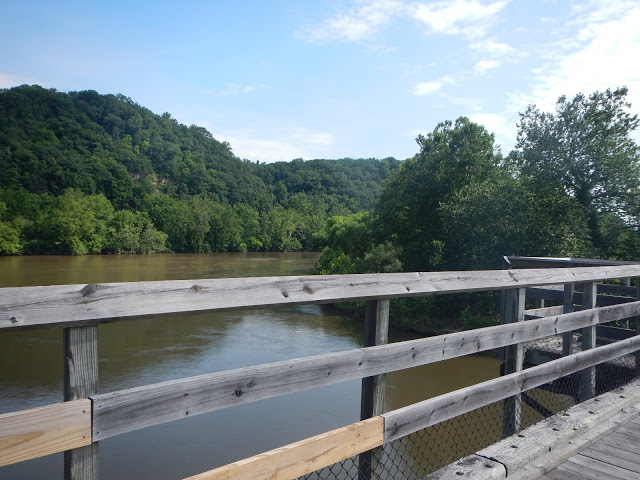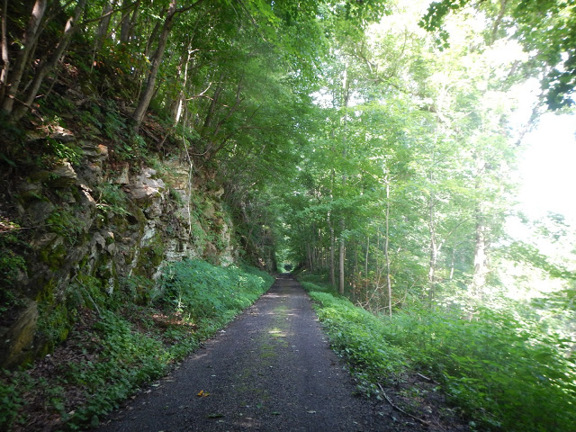 We accessed the trail from the Allisonia/Hiwassee area, and I did my 8 mile long run. Barry came long, too, and he did his own thing. The trail was almost completely in shade, which helped a lot because it was hot and humid, and getting hotter by the minute. It was around 70 degrees and 100% humidity at the start of my run, and a little over 80, still with 100% humidity, when I finished.