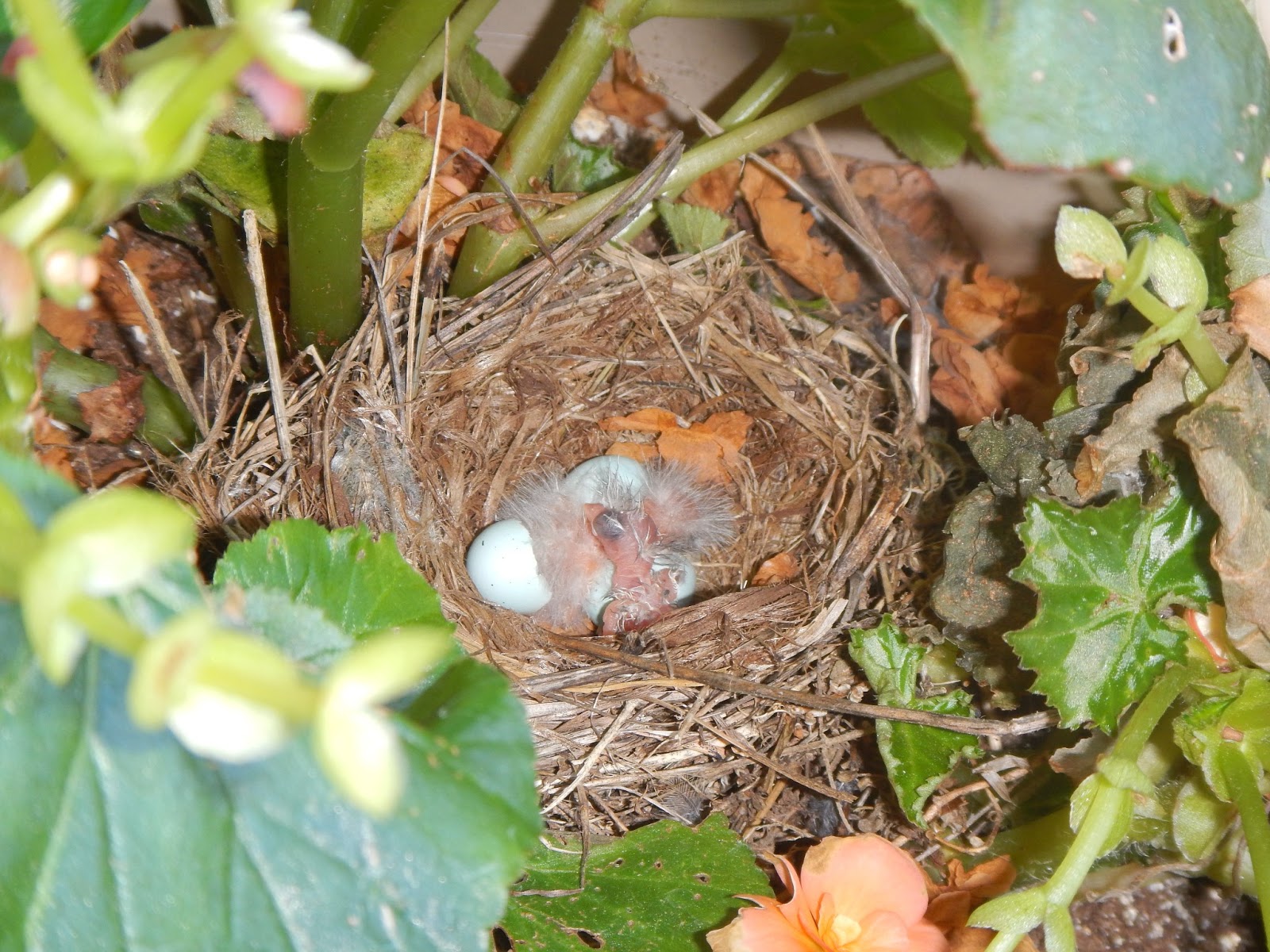 Oh and you remember all of the bird eggs I have in my hanging flower baskets right now? Well I happened to go out to water them last night right as some of the eggs in one of the baskets were hatching! Say hello to Spiky and Spiky #2.