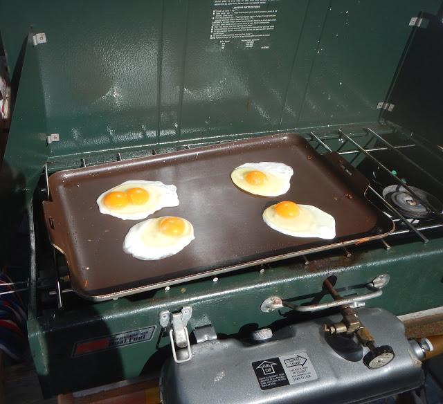 When I got back to the campground and finished my run I drank an entire bottle of water, took two Excedrin, and drank a whole bottle of PowerAde. That helped a bit, but for most of the rest of the day my head would start throbbing anytime I moved. My dad fixed pancakes, bacon, and eggs for breakfast. This was our first time eating eggs from our chickens! And guess what?? The very first one my dad cracked open was a double yolk. I believe that means we will all have good luck for the rest of our lives.