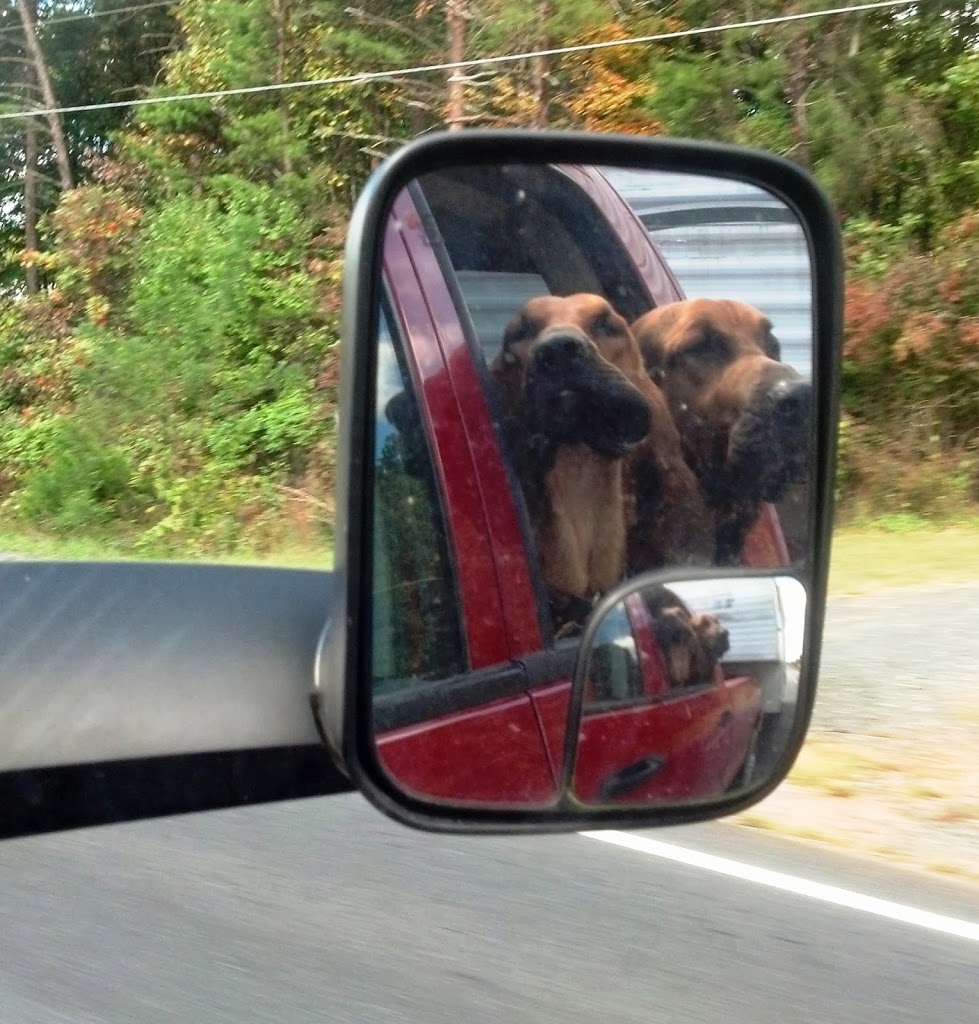 And just for fun, here is a picture of Hank and Scout hanging their heads out the window as we left the campground on Sunday to drive home