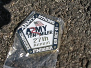 We ran around DC some more, and did an out and back on what I believe is called the National Mall where all of the Smithsonians are located. I felt strong up until mile 8, and then I was ready to be done. I missed the mile 9 marker (and was not running with a Garmin) and thought the race was never going to end, and then I finally saw the finish. We looped around and came down a hill and it was a straight shot to the finish line. I crossed and was immediately told to keep moving. We walked for close to a mile before even being handed a bottle of water, which was pretty crazy. Then I gave the ticket from my bib to a race volunteer who handed me my finisher’s coin. Army Ten Miler does finisher’s coins instead of finisher’s medals.