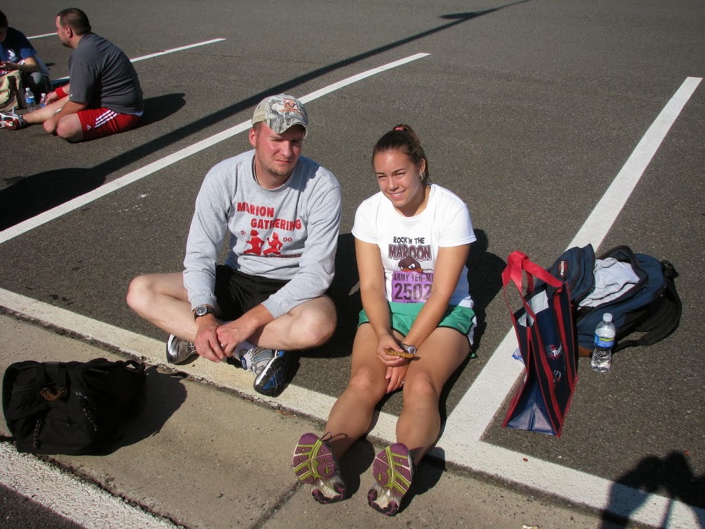 We are traveling back to October 2011, and my first race after a roughly one year hiatus from running. I don’t know why I took that year off. I graduated from college, started work 10 days later, got married a month later, and then was in training for 3 months for work (and was out of town every week). It’s no excuse, but running just kind of fell by the wayside. In March 2011 we traveled to Virginia Beach and I watched Barry run his first full marathon (Shamrock Marathon). Spectating that race and feeling that excitement was the final push I needed to get back into running.