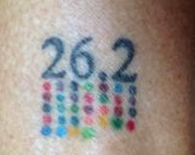 Since this is first and foremost a running blog, I should include something running related (I guess). I recently came across this collection of 41 running-inspired tattoos. Some of them are pretty wild, especially the really colorful ones of specific races. I think this one with the 26.2 and a dot for each successive marathon is pretty neat.