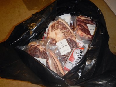 One of the perks of Barry working on a farm is that he comes home with surprises around the holidays. Last year it was a file box full of oranges, grapefruit, and various other citrus fruits. This year it’s 40 pounds of beef in the form of ground beef, t-bone steaks, cube steaks, beef liver, roast, and ground beef patties. Needless to say our chest freezer is very full now.