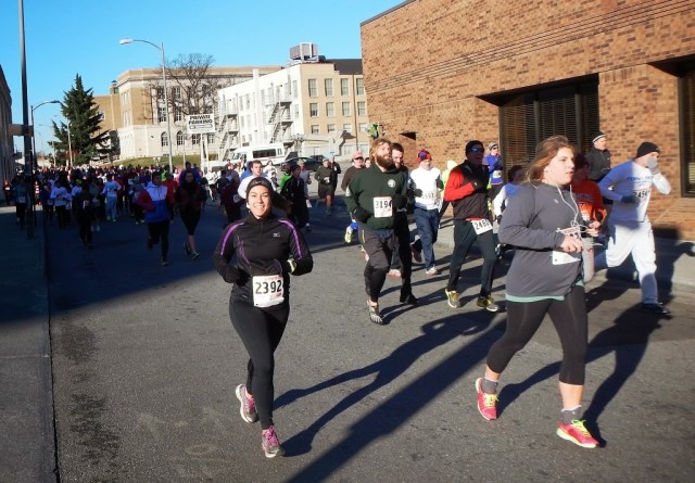 This morning my dad and I headed up to Roanoke for the Drumstick Dash 5K. I ran the race and Dad acted as my personal race course photographer. It was a chilly 23 degrees outside, and I think they said it was around 13 degrees with the windchill. Brrr!