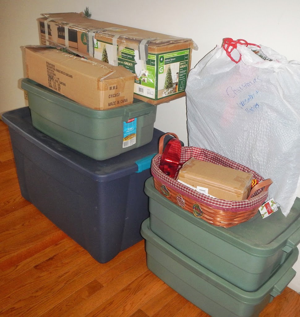 The only other thing we did decoration-wise on Saturday was to bring all of the tubs of Christmas decorations upstairs.