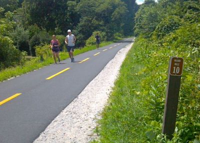 We were able to get out to the W&OD Trail for a run late one afternoon! I was surprised that I felt so good during this run. We had attended a brunch at my uncle’s house that morning and I was still full from biscuits and an egg/spinach breakfast casserole. I think a big part of feeling good was just being back on an old trail where I ran lots of miles and have lots of memories. This is a picture my dad took for Deb when her son Joseph ran the entire W&OD Trail (45 Miles!!) last July. It’s at the same spot where we started our run during the holidays, only it wasn’t this bright or green!