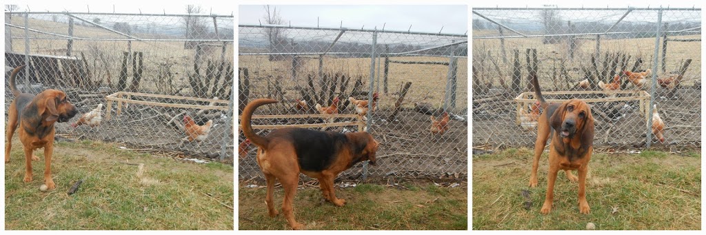 Barry shouted to me that Hank was in the chicken run as he headed out the back door, expecting to find dead chickens. I wasn’t far behind. You won’t believe what we found when we got out there. Six chickens pecking the ground like nothing was wrong, and one bloodhound sniffing the ground with immense interest. I gotta say, Hank really shocked me this time.