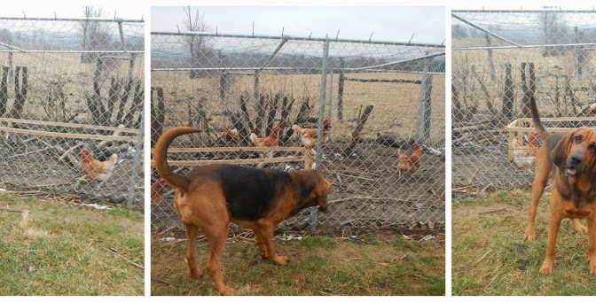 The first time we tried to introduce Hank to the chickens was when they were babies living in our garage in their brooder box. The first thing he tried to do was bite the head off of one of them. So from that time on, we have always kept the chickens and dogs separated.