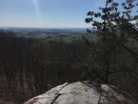 The two overlooks were so cool. We spent a little time at each overlook just taking in the view. I’m so glad we had such a clear day! We marveled at how small and close together things looked from up on the mountain – things that normally feel very spread out when you’re down there driving from one spot to another. We could see the whole loop we would run and the roads we live off of from up there.