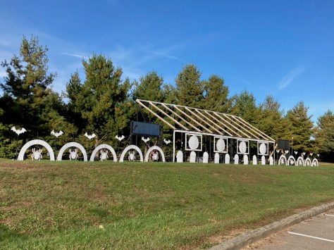 I thought they were already setting up the Christmas lights at the park. But when I went over to look at them, they turned out to be set up for a Halloween light show. Cool!
