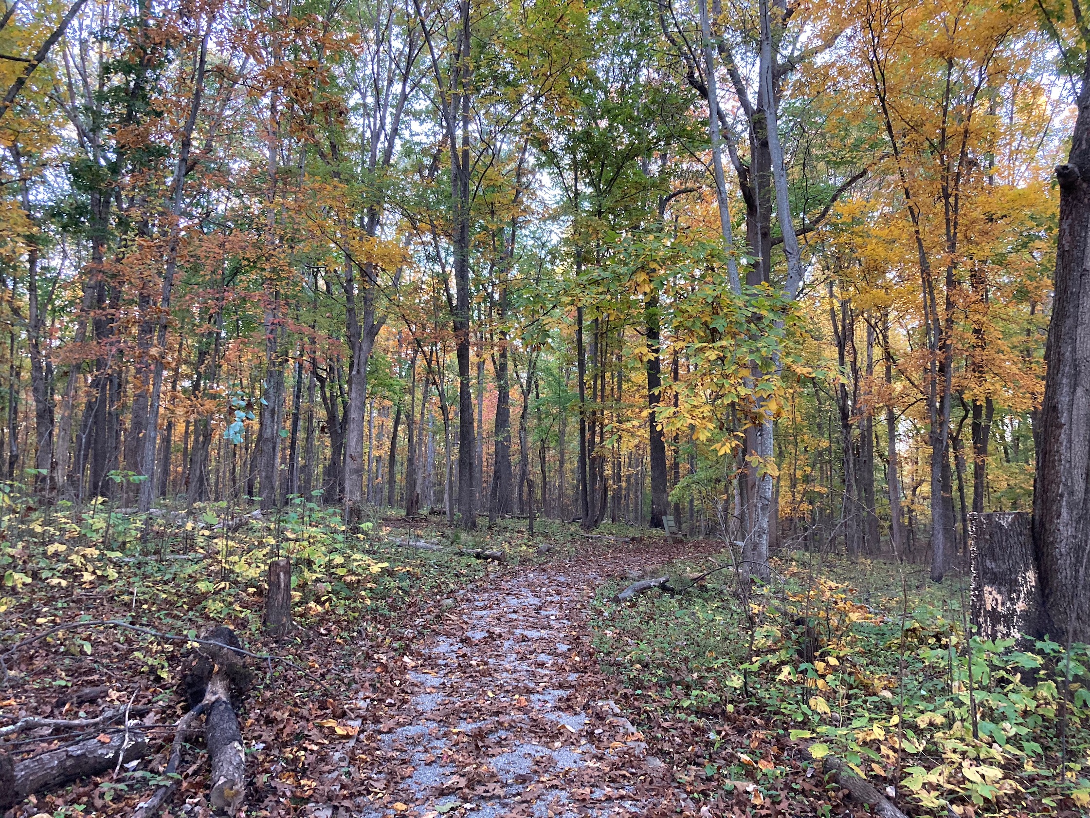 My legs were still a bit sore and tired from Allison Woods. It rained lightly during our run. Honestly, I’d had enough of the rain after last weekend, but it did make the leaves really vibrant!