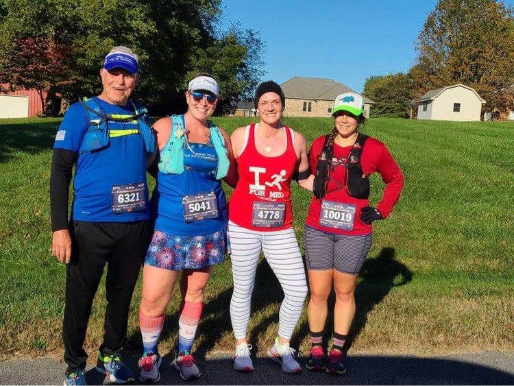 Our surprises for the day weren’t over yet. As we were passing back by our crew at mile 18.5, our Meg’s Miles friend Felix showed up! Felix lives over in Lynchburg and he drove out to Bedford to surprise us and join us for some miles!
