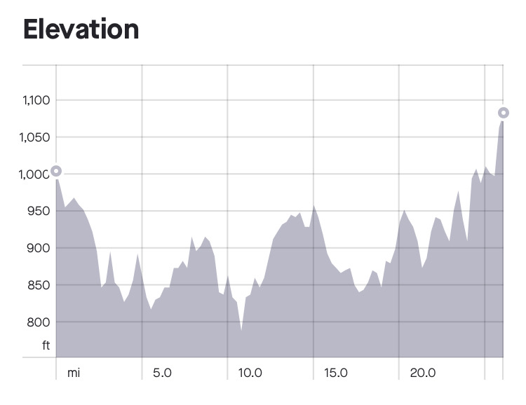 As we got into more of our out and backs at mile 16, I was still having a great time but the miles were feeling a little longer. Again, we were hitting some bigger hills. In total, we climbed around 1800 feet for the day – quite a lot for a road marathon!