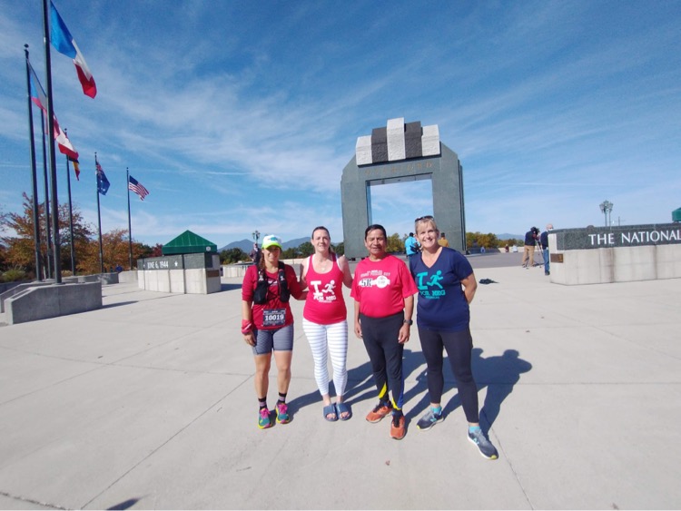 We circled around the road at the memorial and hit 26.2 miles, as we made our way back to the Overlord Arch for our finish. We were all quiet through here. The D-Day Memorial is a powerful place, with the sounds of bullets hitting the water. You think of how scary that day must have been for those soldiers who stormed the beaches at Normandy – many of them still boys. I think we were all reflecting on our day and the significance of our run and where we were finishing. We finished our day walking under the Overlord Arch, completing our virtual Marine Corps Marathon run in 6:44 and change.