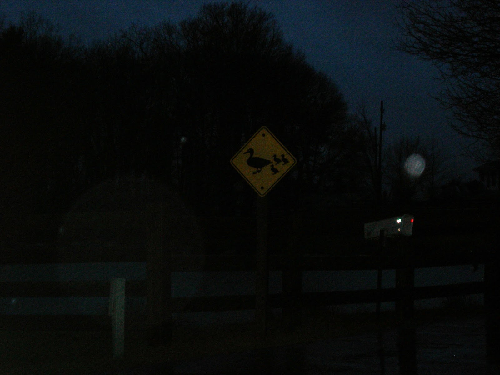 In true duck fashion, I forced myself went outside for a 5 mile run after work today, just on the roads around my house. It was 39 degrees, windy, and raining. Not exactly my favorite weather to run in. Can we go back to 50 degrees and muggy? I did run past this sign, but didn’t see any ducks out playing. It’s a little cold for them, I guess.