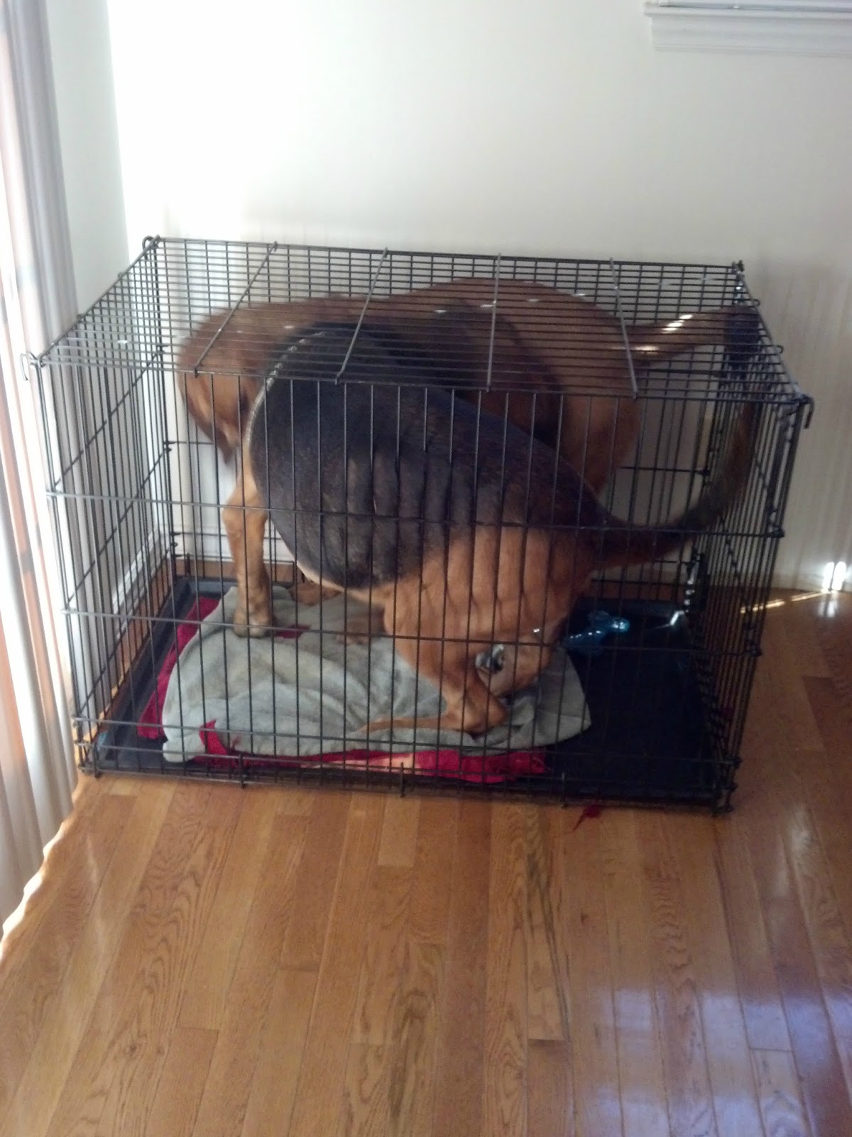 Right after I snapped this picture the bigger dog, Hank, panicked because he realized he couldn’t turn around. But then he did turn around and got out. Crisis averted.