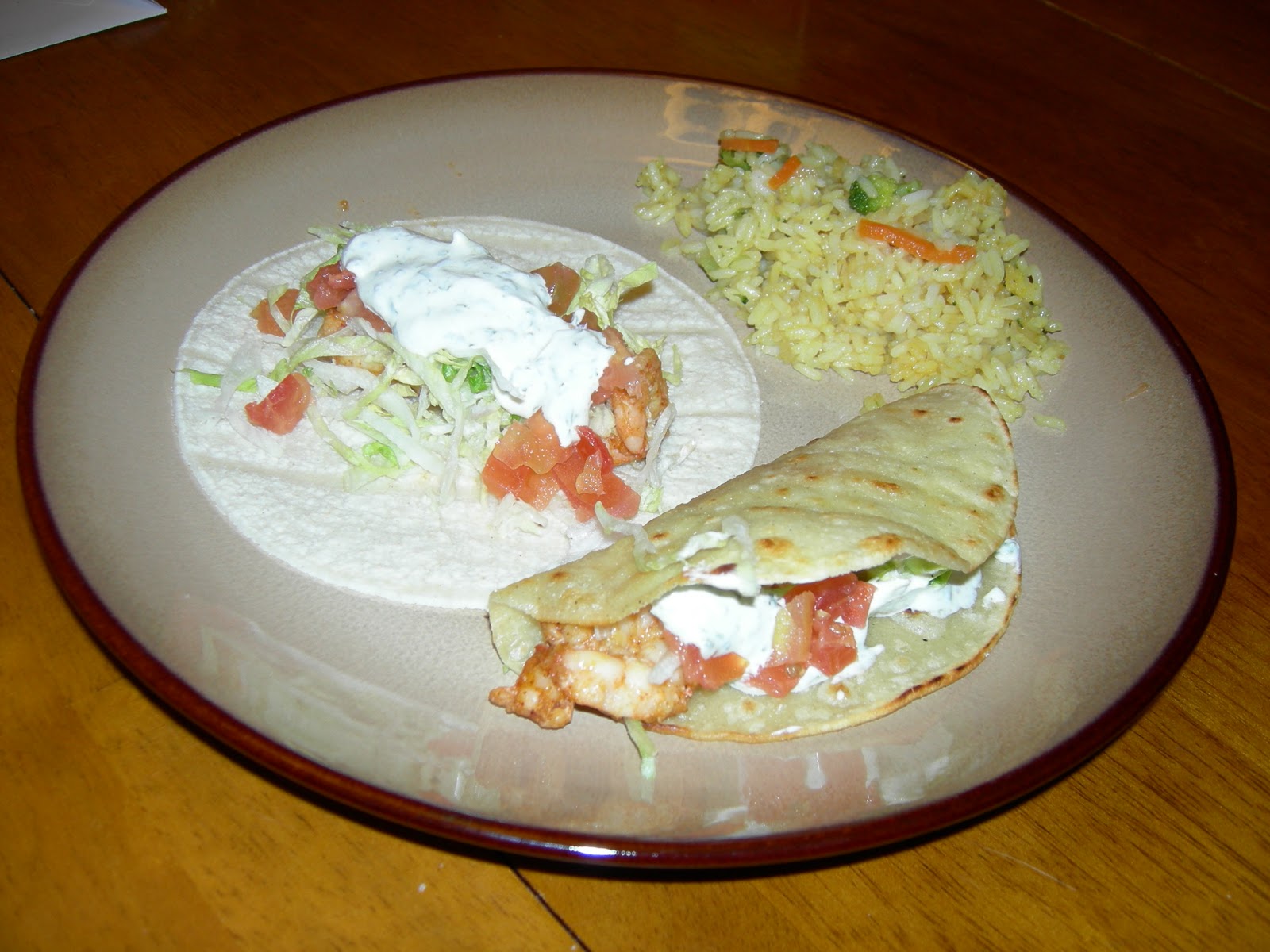 Last night I made some shrimp tacos for dinner, with a side of rice.