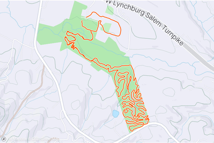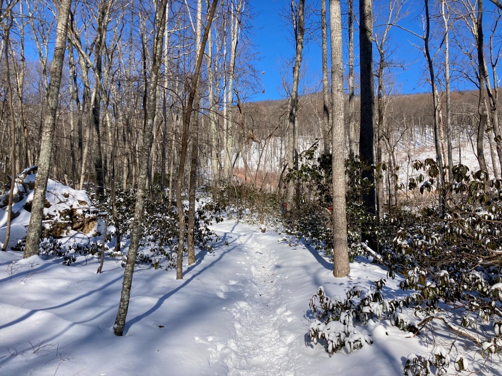 I stuck to my 8/2 interval and just kept cranking down the mountain. I’m pretty sure that’s the fastest I’ve ever run down it. At mile 13.1, I passed Straight Branch and split the half marathon in 2:31:53, about 3 minutes ahead of pace. I told myself “Keep going. Four miles to Damascus.”