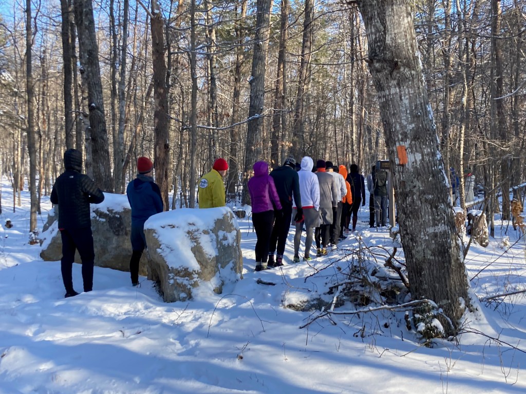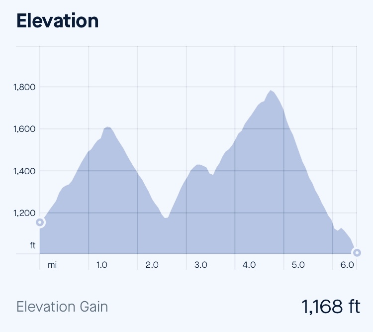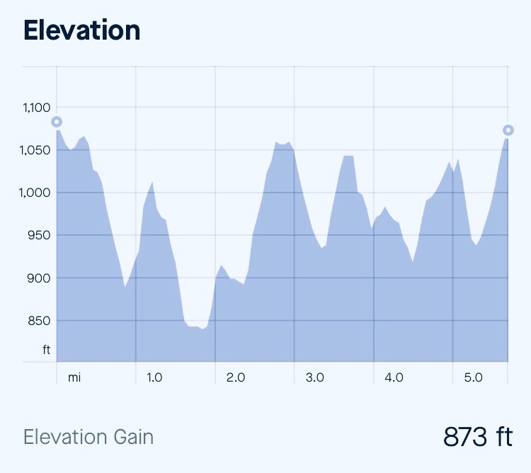 We were bunched up for the first mile and my split was slower than I wanted by about 18 seconds. I was using an 8 minute run / 2 minute walk interval and tried to focus on finding some space so I could run the run segments comfortably hard, as planned. After that first mile we did spread out some and I was able to run at the pace I wanted. I had made a pace chart for myself using a website called UltraPacer. The website uses a GPX file for the course. You can input an overall finish time, and it will give you splits that are adjusted for the incline, aid station delays, etc.