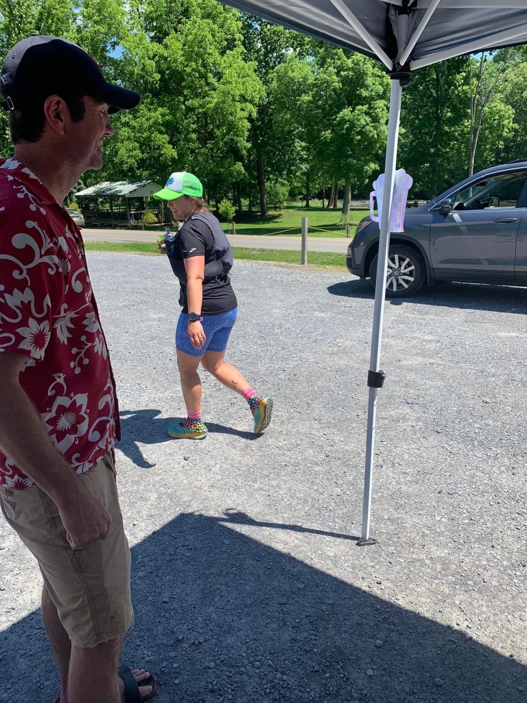 Usually in ultras, I struggle mentally at the start and end up starting out slow. As I settle in and get into a groove, I tend to pick it up and get stronger by the second half. But to PR, I was going to have to be aggressive from the start and take advantage of the gradual downhill for the first 18ish miles. I also don’t usually start ultras with music, but I had made a playlist for the race and started listening to it right away.