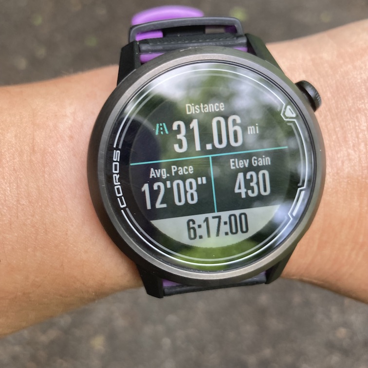 I hit mile 30 in 6:04 and I couldn’t believe I was going to do it. The muscles in my legs were screaming, but I stayed focused on each 4 minute run interval. My watch finally hit 31 miles and at 31.06, I saw 6:17:00! Wow. I couldn’t believe I had done it. I snapped a quick picture and texted it to my husband, Barry.
