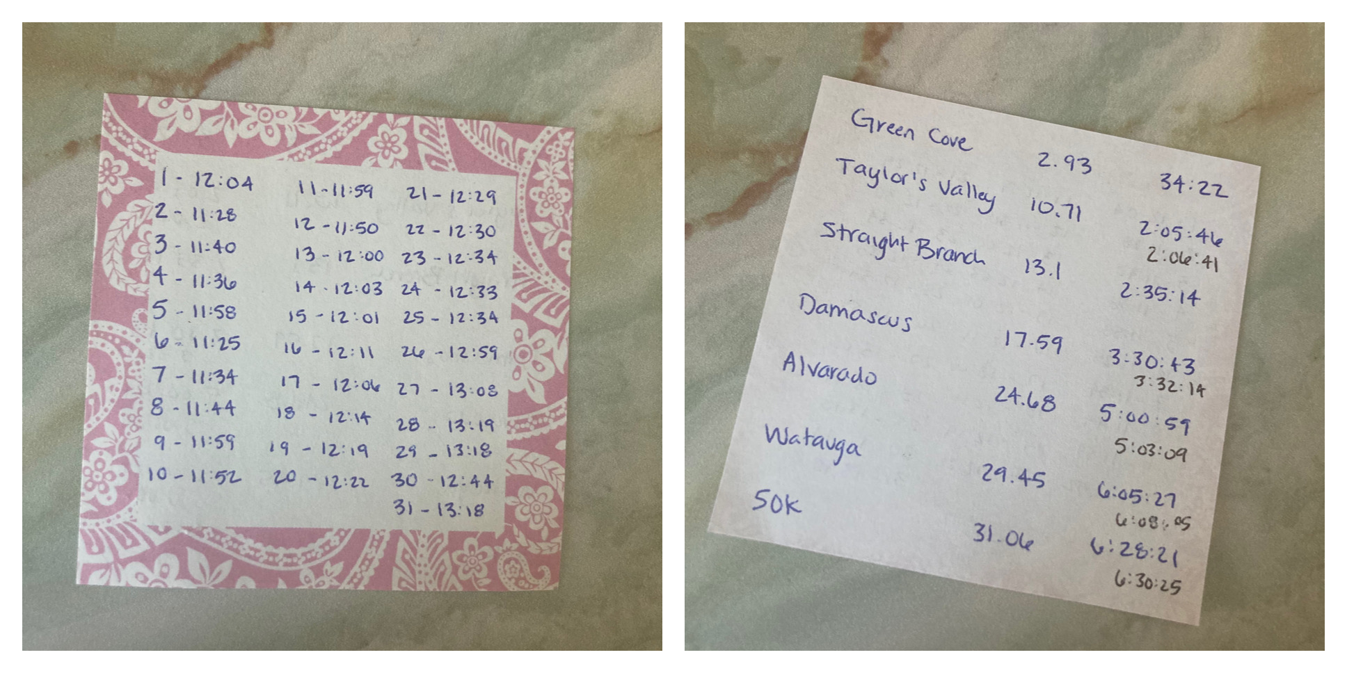 I knew I had put in some good work early on in the race. I was still looking at my pace chart each mile, and it felt awesome to be on the third column of the mile splits. I told myself “Last third of the race to get that 50K PR.” The miles seemed to tick by a bit slower on the way to Alvarado, and my main focus was just keep the miles at 12:30 or faster and you’ve got this. I did that all the way to Alvarado, splitting each mile between 11:30 and 12:31. I was starting to believe I was really going to do this.